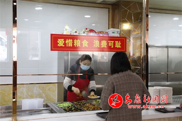 走進餐廳,“文明餐桌·厲行節約”“文明餐桌·光盤行動”“珍惜糧食·遠離浪費”等宣傳海報和標語或張貼在墻上,或擺放在餐桌上,十分醒目。據餐廳負責人介紹,除了常態化的氛圍營造,餐廳還定期為食堂工作人員開展愛惜糧食、文明用餐等相關培訓活動,通過建立微信用餐群,實行“報伙”用餐制度,定量制作餐品,實現精準供餐,同時號召用餐人員適量取餐、不浪費食物,從源頭上杜絕糧食浪費。與此同時,食堂還在用餐群內組織開展“曬光盤照片 贏積分換禮品”活動,社內職工可通過在訂餐群內曬“光盤照片”獲得相應積分可兌換相應禮品。“今天兌換了一桶洗衣液,這是我第二次兌換禮品,雖然都是小禮品,但非常有意義,感覺既參與了創文過程,又享受了創文成果。”剛兌換完禮品的報社職工說道。