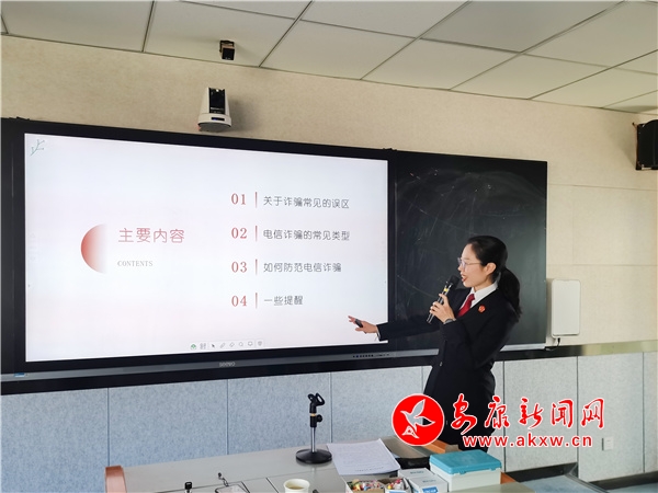 在你問我答間,同學們熟練地掌握了家長群里“臥底”、網絡游戲和短信里“陷阱”的辨別方法和防范措施,增強了課程的趣味性和參與度。此次宣講,張曄法官以案說法、以例釋法,有效提升師生及家長對電信網絡詐騙的“辨別力”和“免疫力”,以點帶面,廣泛輻射,筑牢預防電信網絡詐騙法治防火墻。
