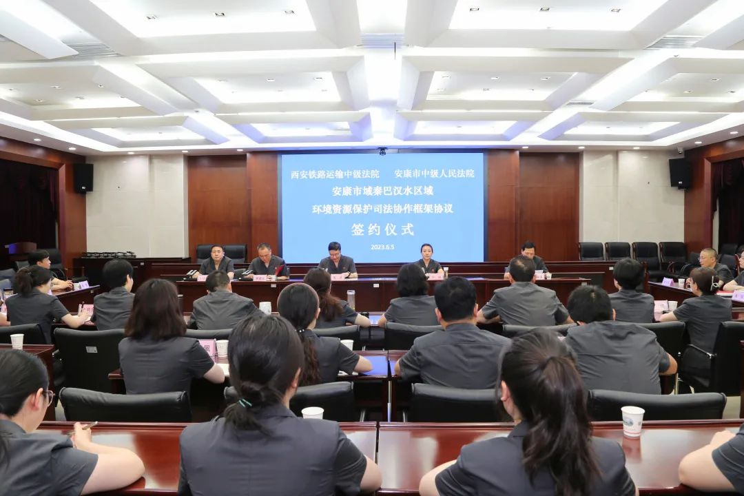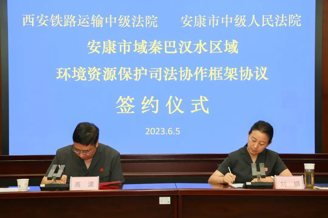6月5日,安康市中級(jí)人民法院攜手西安鐵路運(yùn)輸中級(jí)法院,舉行《安康市域秦巴漢水區(qū)域環(huán)境資源保護(hù)司法協(xié)作框架協(xié)議》簽約儀式,共同擘畫(huà)建設(shè)秦巴漢水生態(tài)安全屏障“同心圓”。Yhf安康新聞網(wǎng)