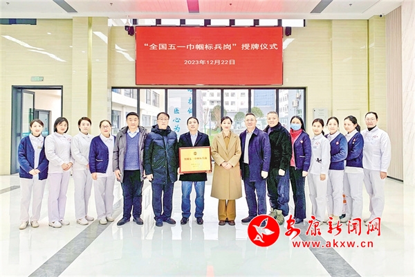 2023年12月22日,市總工會為市中心醫院感染性疾病科頒發“全國五一巾幗標兵崗”牌匾。