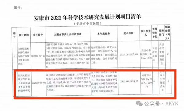立項三:穴位按摩在遠視儲備項目中應(yīng)用獲安康市科技局項目(寇列玲、栗鎣)