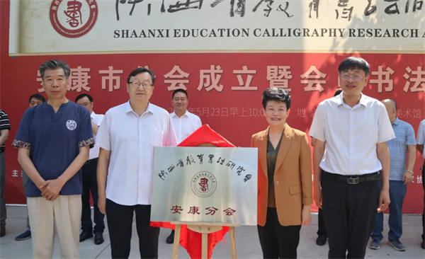 陜西省教育書法研究會名譽會長陳云龍、馬西平,安康市教育體育局黨委書記、局長屈曉紅,安康中學校長朱平共同為安康分會揭牌。