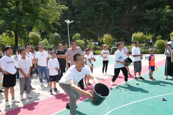 整場活動圍繞“感黨恩”“講孝義”“愛運動”三個主題展開。在“感黨恩”活動中,干部群眾一起回顧黨的光輝歷史、歌頌黨的豐功偉績,為黨的103歲生日獻上誠摯祝福;在“講孝義”活動中,宣講員緊扣建設崇德向上幸福安康目標,用“小道理”講“大故事”,用“身邊事”教育“身邊人”,引領群眾自覺奮發向上,崇德向善。在“愛運動”環節,干部群眾齊上陣,踴躍參與到“螃蟹賽跑”、雙人擲沙包、環湖健步走、踢毽子、投壺、估重等趣味運動項目中,現場氣氛熱烈、歡聲笑語不斷,大家在青山綠水中,盡享運動的快樂。
