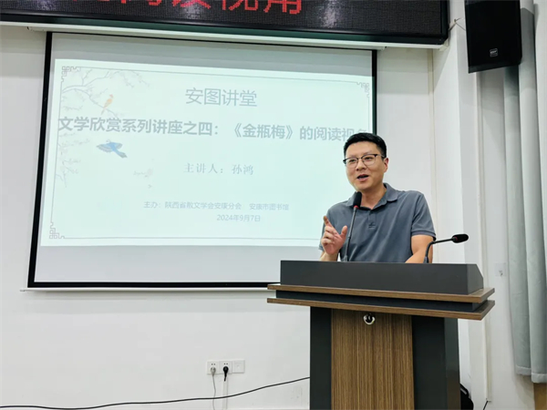 由陜西省散文學(xué)會(huì)安康分會(huì)攜手安康市圖書館主辦的“文學(xué)欣賞系列”講座,于9月7日舉辦第四場(chǎng)。平時(shí)定員50人的市圖書館多功能廳,當(dāng)日擠了83人。來自全市各地的作家、文學(xué)愛好者共同聆聽了安康學(xué)院教授孫鴻主講的《〈金瓶梅〉的閱讀視角》。