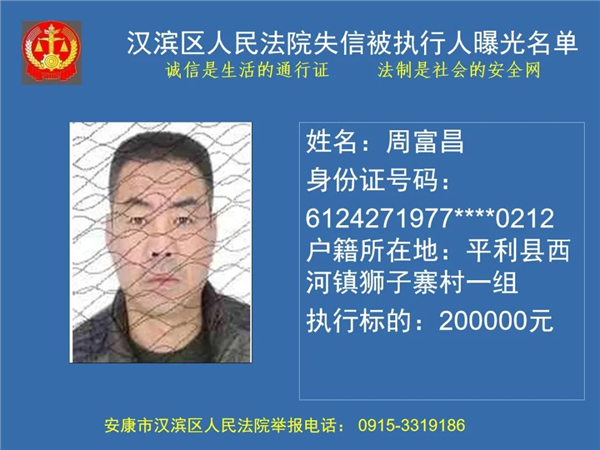曝光失信 | 安康市漢濱區人民法院失信被執行人曝光名單(2022年第1期)