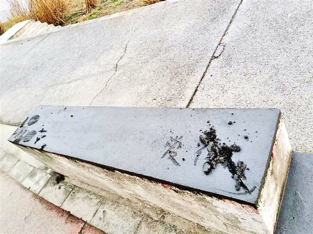 清晨跑步途徑江邊步道,一位施工的師傅和江灘公園保潔員說:“在擋護墩上刻字,太不文明了。”走到跟前,才知道是昨天下午剛剛施工結束的擋護墩,還未完全凝固的……