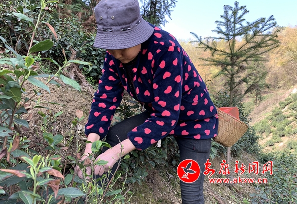 春風送暖,又吹綠了茶山。天才漸亮,瀛湖鎮橋興村十二組的楊明芳,就拎著竹籃,小心翼翼的爬上陡峭的茶山上,細心尋找綠葉中探出的鮮葉,將綠油油的嫩芽采摘進竹籃里。茶葉已成為了瀛湖鎮橋興村和火星村茶農們的致富之路。YW6安康新聞網