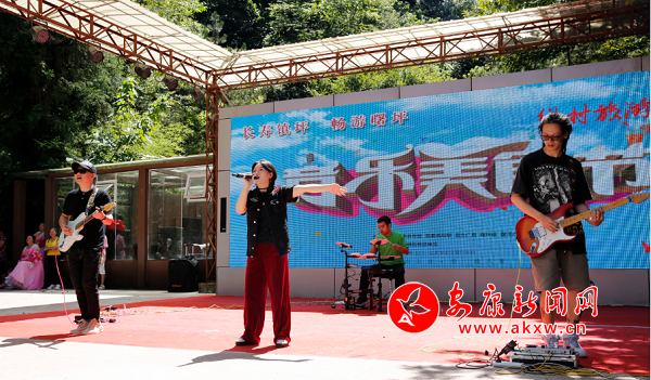 炎炎烈日擋不住游人的熱情,音樂、美食、美景在這里交融,八方來客在這里聚集,共享這一嗨翻全場的聽覺、視覺、味覺盛宴。由聯合村帶來的獅子舞拉開了文藝演出的序幕,百人旗袍秀、搖滾樂團更是將整場演出推向了高潮。hJe安康新聞網