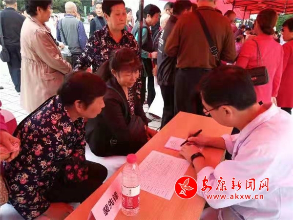 救心義診活動開始后,參展醫院工作人員現場發放宣傳單,提供專家義診咨詢,并為市民免費測血壓,測血糖,義診免費贈藥;顒蝇F場測血壓、血糖,領取贈藥的群眾排起長隊,醫護人員主動攙扶行動不便的老人,耐心進行心血管疾病的防治及健康生活常識指導。