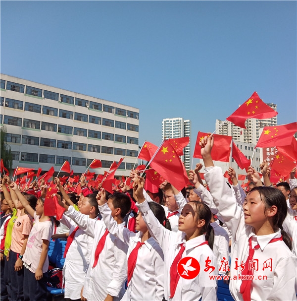 初二九班的王運城作為此次活動中的旗手,他說:“今天,能站在這里我感到很自豪,明天就是祖國母親的生日,我們在此獻歌,祝愿祖國母親永遠繁榮昌盛。”bkY安康新聞網