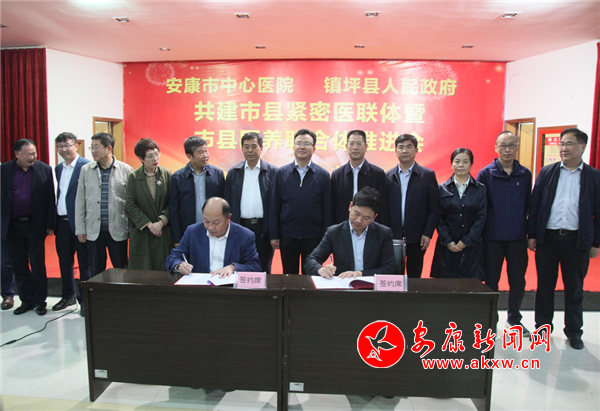 推進會前,鎮坪縣政府一行參觀考察了安康市中心醫院三個院區和重點專科。會上,安康市中心醫院和鎮坪縣政府就醫聯體建設情況、對口支援情況進行了匯報,并圍繞深化醫改、對口支援、健康扶貧、醫共體建設、康養結合進行座談交流。隨后,雙方簽訂了市縣緊密醫聯體暨市縣醫養聯合體協議。