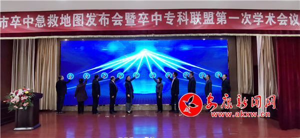 發(fā)布儀式上,與會領(lǐng)導(dǎo)為我市卒中?坡(lián)盟首批成員26家單位授牌,并共同啟動安康市卒中急救地圖。