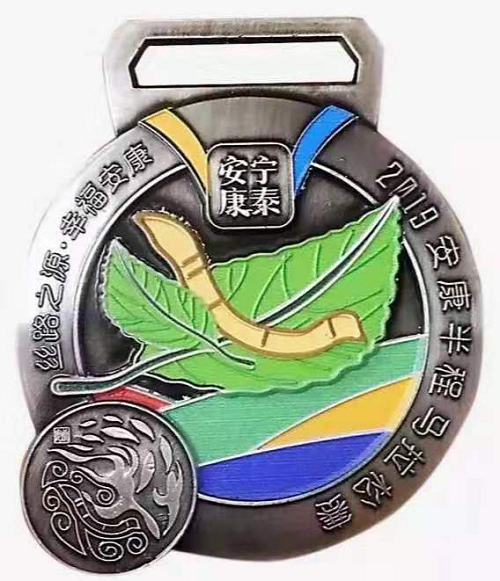 據獎牌設計者金沙介紹,本次完賽獎牌于十月初開始設計,10月29日正式公布。獎牌正面核心畫面選擇了出土于安康的一級文物—鎏金銅蠶,銅蠶附于桑葉之上,既突出了悠久的桑蠶文化,又是本次主題“絲路之源”的體現。