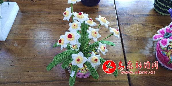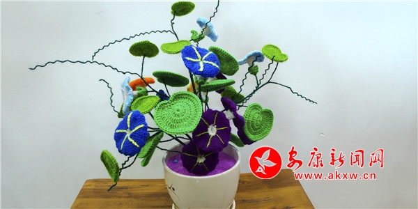 走進旬陽縣城關(guān)鎮(zhèn)老城社區(qū),一個專為老年人打造的 “巧手坊”很是吸引人。溫馨的燈光,溫暖的房間,桌子上、架子上擺滿了百合、菊花、鴻運當(dāng)頭等手工藝編織品,都是普通的毛線編織而成。若不仔細看,這些“綠植”和“盆栽”足能以假亂真。