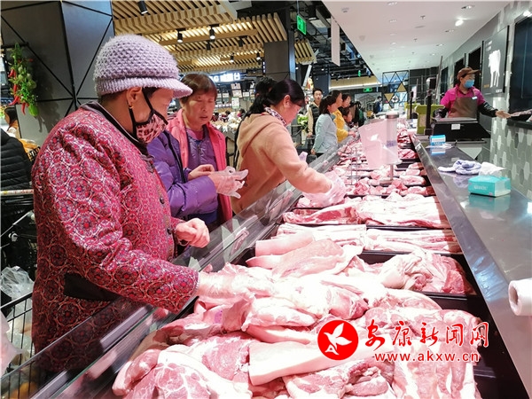 本網訊(實習記者 馬娟)“特價前腿肉23.8元一斤,歡迎新老顧客前來選購。”喜盈門超市廣播著特惠價格信息,很多顧客聞聲而來,挑選豬肉。“五花肉、前腿肉的價格比昨天降了3塊錢,這星期豬肉價格慢慢降下來了。”生鮮區的員工許連琴說。