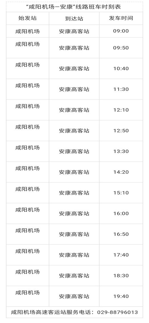 自2019年1月10日起,“安康—咸陽機場”線路的發車時間也做出了更改,具體如下:YSh安康新聞網