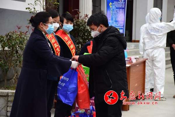 活動現場,白河縣人社部門、中國郵政集團白河縣分公司為赴蘇務工人員贈送了愛心禮包,預祝他們平安返崗。