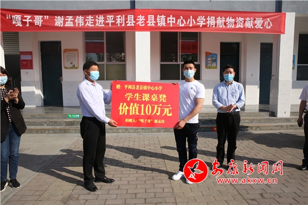 4月30日,2004版電視劇《小兵張嘎》中“嘎子”的扮演者謝孟偉,帶著愛心和希望,來到了平利縣老縣鎮中心小學,為那里的孩子們送去了價值10萬元的課桌和板凳。“太好了,五一收假就可以看到新桌椅了”,參加捐贈儀式的學生代表說。