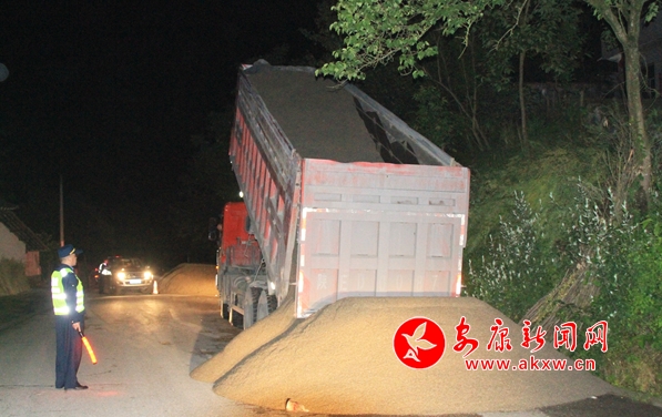 當晚七點多,記者跟隨執法人員來到國道211線安嵐路K1603+100米處,發現一輛陜E牌照四軸貨車,經現場稱重檢測,車貨總質量為70.66噸,緊接著,又一輛滿載砂石的四軸貨車緩緩駛來,這輛貨車超限超載更為嚴重,經檢測車貨總質量為87.39噸。依據《交通運輸部62號令》等相關法律法規規定,這種四軸車輛其車貨總質量不得超過31噸,而這兩輛貨車實際超限39.66噸、56.39噸,超限128%和182%。