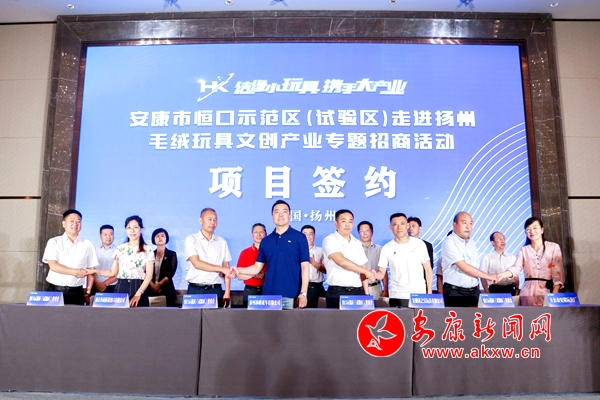 推介會上,恒口示范區和市直相關部門分別就營商環境、毛絨玩具產業政策、金融支持政策及重點項目作了推介。恒安玩具有限公司,安康市毛絨玩具文創產業協會負責人和揚州市工商聯、市毛絨玩具行業協會、企業代表分別發言。現場簽約項目16個,總金額額18.5億元,涵蓋毛絨玩具文創產業創意設計、生產加工、倉儲物流和運營策劃等全產業鏈條和醫療康養、現代教育等諸多領域。YNp安康新聞網