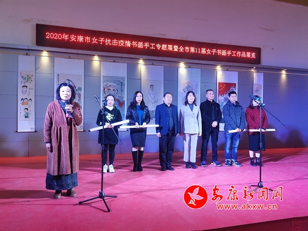 “一場疫情給我們帶來了無比的沉痛和思考。作為安康市女子書畫手工協(xié)會的姐妹們,我們在思考能為抗疫做點什么?在2020年4月8日協(xié)會向全市女子書畫手工作者發(fā)出通知,號召大家積極創(chuàng)作抗擊疫情書畫手工作品,廣大女作者通過半年的創(chuàng)作,產(chǎn)出了許多優(yōu)質(zhì)作品,今天在漢濱區(qū)文化館這些抗疫作品正式展出。”市女子書畫手工協(xié)會主席王愛萍說道。