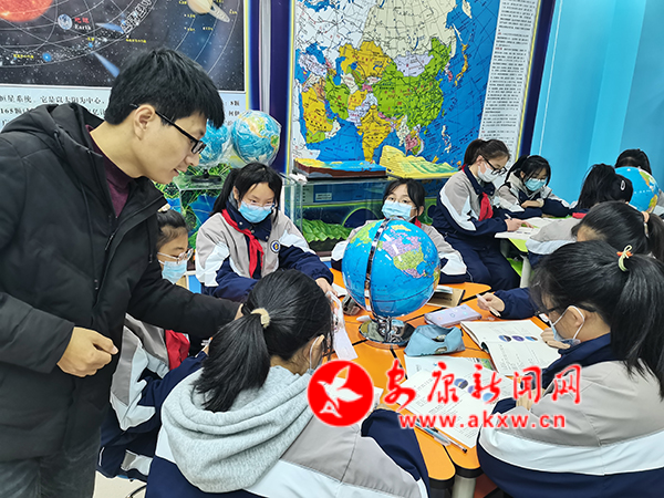 在地理教室中,地理教師孔杯正在為學生們講解課程內容“我們生活的大洲——亞洲”。但他沒有選擇常規授課方式,而是通過設置關于冬奧會的問題,啟發學生開展思考。北京為什么可以承辦冰上項目?非洲為什么不適合舉辦冬奧會?學生們齊齊開動腦筋,從多方面踴躍回答問題。老師表示,孩子們寒假期間最關注的冬奧會也是優質課程資源,通過結合冬奧會,能夠產生暨契合時代焦點,又戳中師生關注點的生動課程。