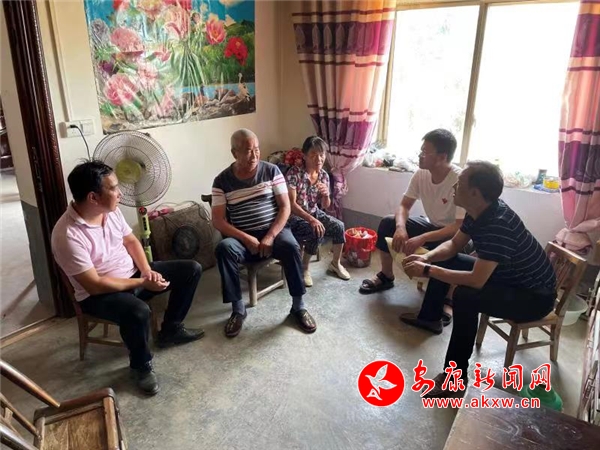 6月17日,安康日報社經營支部到漢濱區流水鎮學坊埡社區,走訪慰問幫扶的監測戶以及脫貧戶,并對社區護河員王友平進行了專訪。(記者 張世虎 攝)