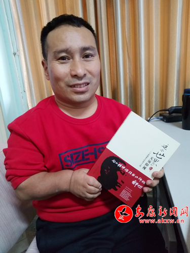 雖然被禁錮在矮小的身軀中,但殘疾作家王庭德從未放棄對(duì)詩(shī)和遠(yuǎn)方的追求。從起步的短篇《跋涉的生命》,到歷時(shí)兩年完成19.7萬(wàn)字的長(zhǎng)篇自傳體紀(jì)實(shí)文學(xué)《這個(gè)世界無須仰視》和詩(shī)集《心靈的燈盞》,腦海中的數(shù)萬(wàn)文字傾瀉,書寫出王庭德自強(qiáng)不息的奮斗人生。
