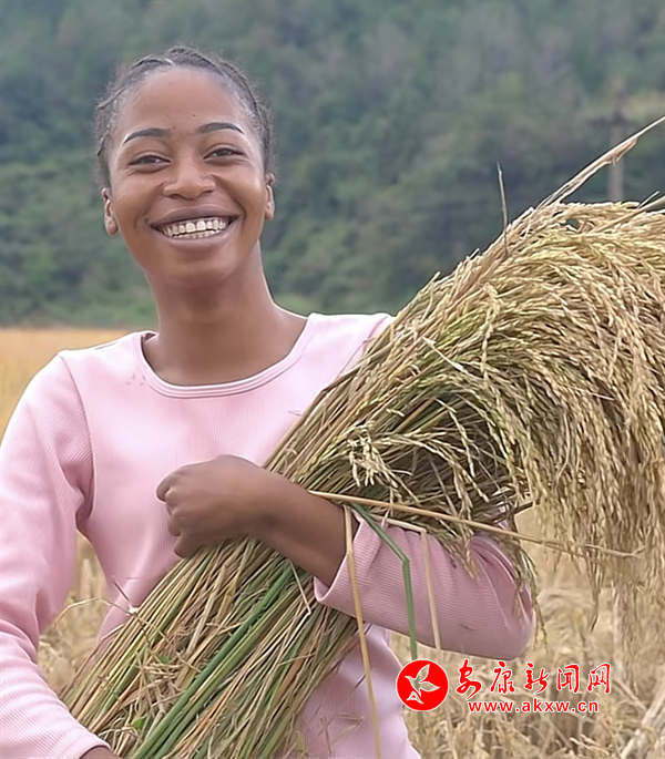 本以為菲利絲的生活會像大多數的農村留守婦女一樣,辛苦單調,平淡無奇。不曾想,2022年8月,菲利絲迎來人生的又一次轉變——她認識了老李。老李,一位攝影愛好者,鏡頭中裝滿鄉愁的農村孩子。他得知樂觀開朗的非洲女兒菲利絲的故事后,決定找到菲利絲拍組視頻,從未與陌生男士打過交道的菲利絲害羞地躲進了屋里,丟下老李獨自在屋外等了一下午,回憶起初次見面時的場景,菲利絲咧著嘴笑道:“那時候躲在屋里是不好意思,不熟悉,過了好長時間,看著老李像是個好人,才敢出來同意和他們一起拍視頻。”