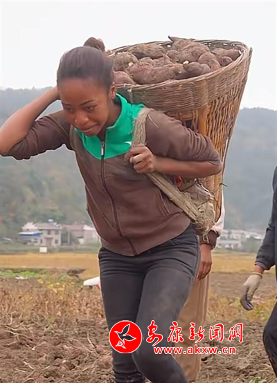 沒有丈夫的依靠,菲利絲便成了家里家外的“一把手”,頭頂百余斤的大米,肩扛比自己身體都粗的一捆柴火,劈柴、做飯、喂豬、干農活、做家務,無論生活有多艱苦,菲利絲從未抱怨,樂觀迎接生活的挑戰,以更加積極的狀態融入當地的生活,為遠方的丈夫展示著永遠陽光開朗的笑臉。