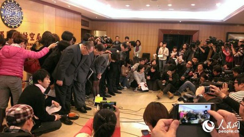 陳欣德說,飛機起飛4分鐘失聯,今天天氣狀況符合飛行要求,具體原因待飛安會調查。圖為記者會現場。