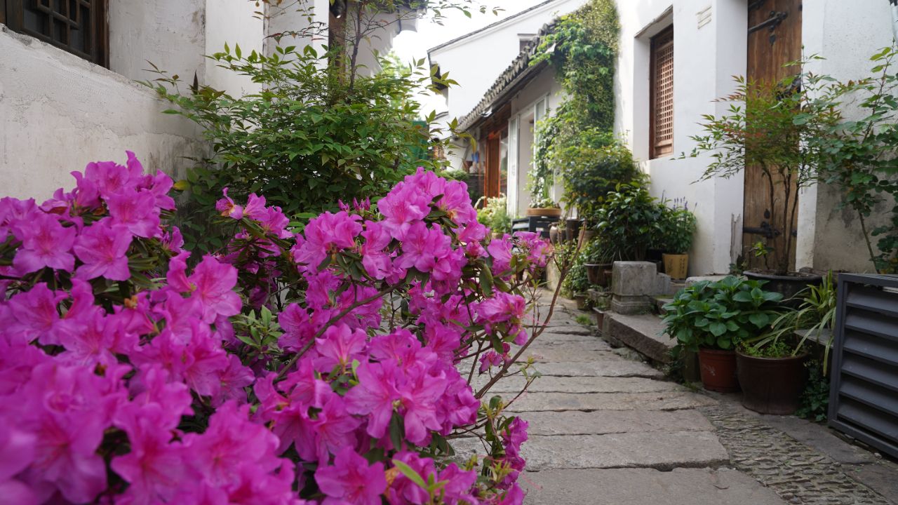 薔薇花開、清風拂面,春日的早晨,走在位于江蘇省無錫市的清名橋歷史文化街區(qū),一幅詩意的江南水鄉(xiāng)畫卷鋪陳在眼前。4月22日,記者在街區(qū)里看到,一位居民搬出了小凳,坐在家門口摘菜,身邊擺放著10多盆綠植。