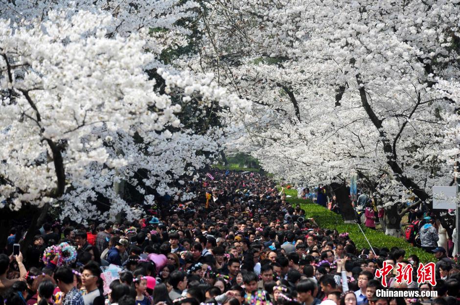 3月21日,武大櫻花盛開游客如織。當日,武大櫻花盛開的首個雙休日。長約200米的櫻花大道上1000多株櫻花競相綻放,吸引著數萬游客,使寧靜的校園變成了熱鬧的公園。中新社發張暢 攝Suf安康新聞網