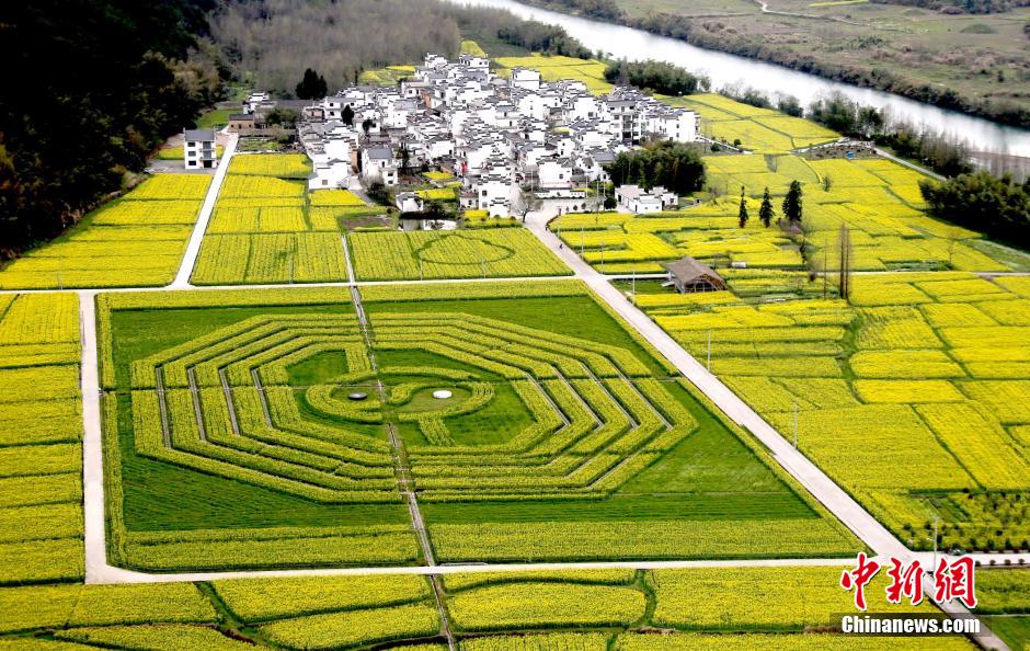 3月24日,安徽齊云山油菜花盛開金黃與一個“太極八卦圖”相映成趣。近日,在安徽黃山市休寧縣齊云山腳下南坑村360多畝盛開金黃的油菜花叢中,一個巨型的“太極八卦”圖案層次分明,清晰可見,吸引眾多市民和游客紛至沓來欣賞觀光。中新社發(fā) 施廣德 攝WaQ安康新聞網