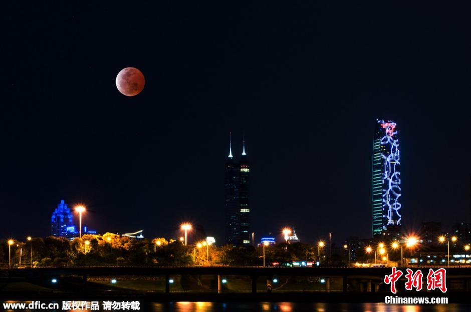 2015年4月4日,紅月亮現(xiàn)深圳夜空。(合成)鄧飛 攝Ep6安康新聞網(wǎng)
