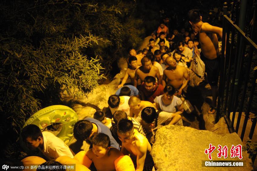 2015年07月28日,山東省濟(jì)南市,免費(fèi)泉水浴場(chǎng),吸引數(shù)百人在門外排“長(zhǎng)等待。場(chǎng)面十分壯觀。據(jù)了解,由于濟(jì)南持續(xù)高溫悶熱,這兩天泉水浴場(chǎng)迎來了今年以來的最高峰,每天人滿為患,大概日接客近千人。管理方表示,人數(shù)爆滿時(shí)會(huì)適度限制市民進(jìn)入。陳寧 攝 圖片來源:CFP視覺中國Z4L安康新聞網(wǎng)