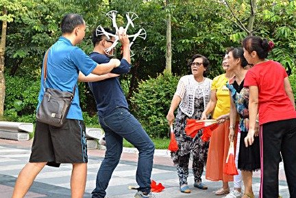 小伙創意無人機送月餅劵給女友 遭大媽哄搶