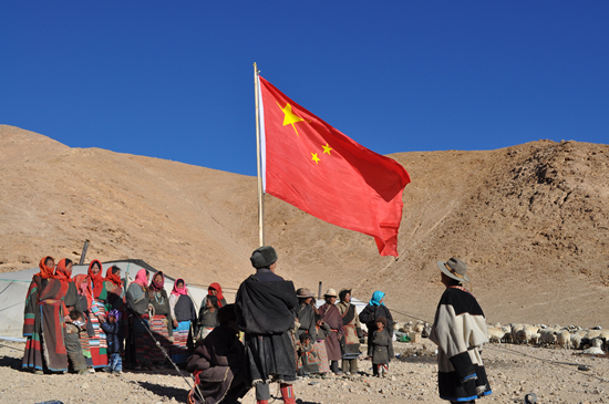 謝恩主組織牧民升國旗、唱紅歌