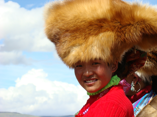 身著盛裝觀看賽馬的牧區姑娘