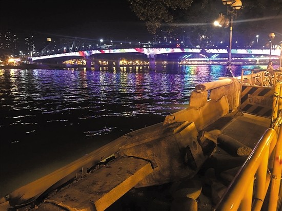 至于肇事船只為何緊挨護欄而行,又為何突然失控撞斷堅固的花崗巖?目前,事故原因正在進一步調查中。(記者 張豪)