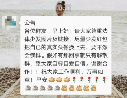 【傳聞】有桂林網民表示收到了一條“中國網絡監控在清理整頓,要求微信群友將頭像更換為個人真實頭像,否則會被鎖群,群成員的手機號也會被控制”的消息。