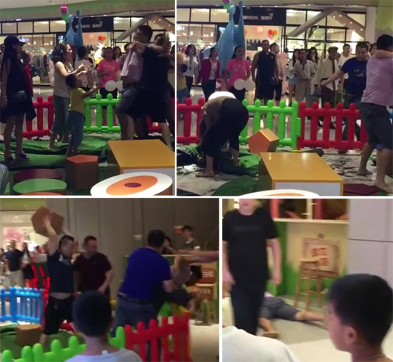 網傳視頻顯示,在一所商場內的兒童游樂區內,有若干名男子、兩名女子在激烈打斗。另有家長慌忙將孩子帶離區外,還有工作人員和顧客在驚愕圍觀、勸架。其中一名身穿粉色上衣男子被一名黑衣男子高舉的立方體積木砸倒,俯臥在地,不再動彈。在微博和微信群內,有人稱打架地點為深圳龍華星河ICO,事情是“兩個孩子搶玩具,引媽媽對罵、對打,然后各自老公打,然后老公朋友打,結果是某個老公被打成植物人”,引發網民關注。一些評論惋惜稱“兩個家庭算廢了”,“沖動是魔鬼”。