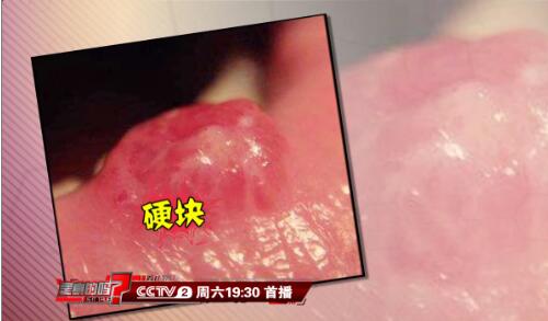 北京協和醫院口腔科副主任醫師周煉介紹:“潰瘍的時間很長,且沒有自愈傾向,持續漸進性的增長,直徑得在一公分左右,至少應該是在花生,或者說在蠶豆以上,一般會有硬塊或表面會呈現外凸性的生長。這種復發性的口腔潰瘍周圍是軟的,它表面有時候呈菜花狀,中間會有一些裂紋,有時會出血。”