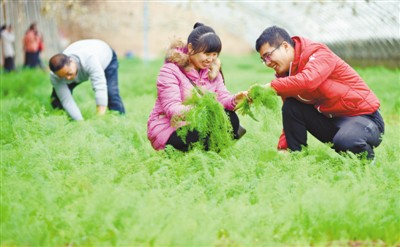 圖為游客在河北省衡水市桃城區鄧莊鎮一家庭農場采摘茴香。 XEp安康新聞網