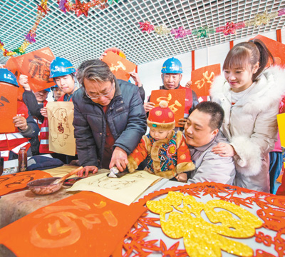 2月7日,北京木版年畫匠人張闊正為北京建工集團總承包部A2工程項目部的工人們現場印制生動的狗年木版年畫。再過幾天就要過年了,北京市文聯組織藝術家們為這些北京副中心的建設者們送上春聯年畫和祝福。(記者 徐燁 攝) wvQ安康新聞網