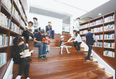 附近居民在“融書房”閱讀。(記者 屠知力 攝)YnS安康新聞網