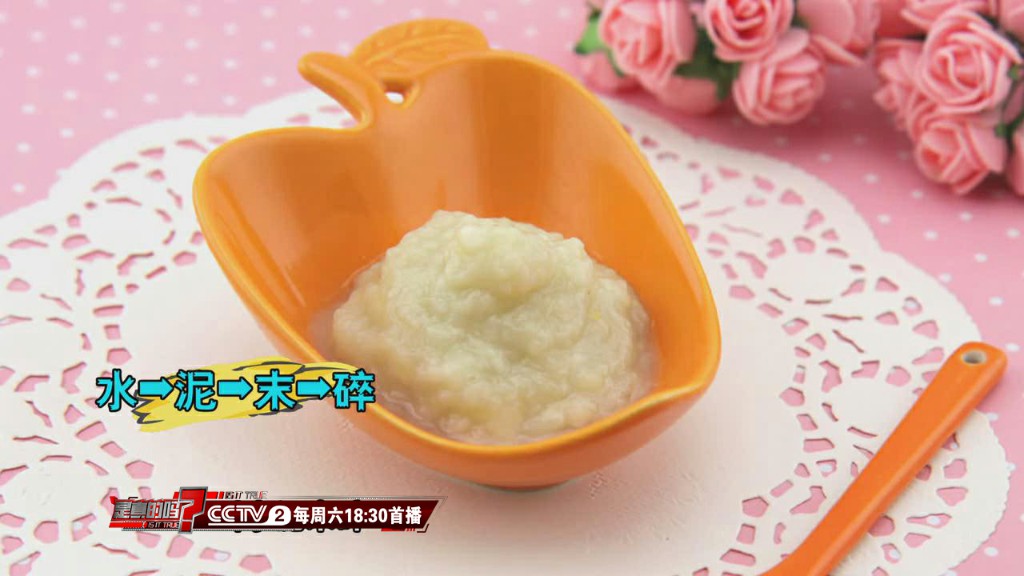 晁爽說:“從輔食的添加來講,應該是從泥糊狀食物開始,叫‘水泥末碎’。寶寶生下來,先喝的是奶或者水,它是液體的。然后,要逐漸轉(zhuǎn)化成固體食物,經(jīng)過泥、末、碎的過程。泥糊狀食物是人類營養(yǎng)史上不可逾越的一個階段,它能夠訓練寶寶的吞咽功能,同時能夠提供寶寶所需要的一部分營養(yǎng),我們建議,除了添加米粉、菜泥以外,如果要添水果,應該以果泥的形式添加。”