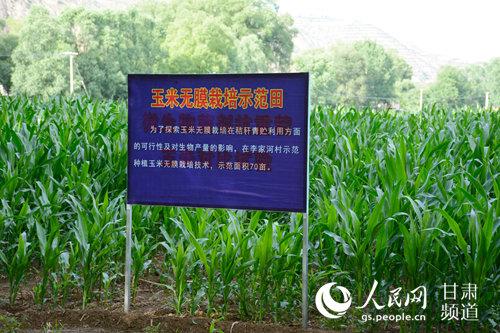 玉米無膜栽培試驗田里生長的玉米。(柳澤興 攝)