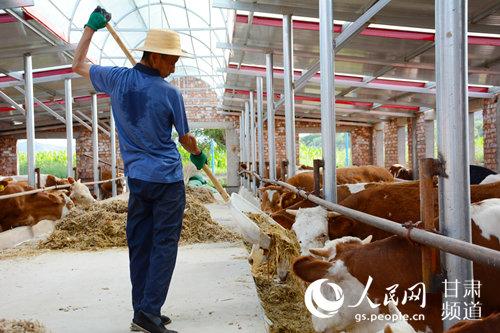 45歲的毛哈比是臨夏回族自治州廣河縣伊澤苑牛羊養殖農民專業合作社的飼養員,不用風吹雨淋,包吃包住,每月還能拿到將近3000元錢的工資,再也不用四處打工。他說道:“飼養員這個工作很保險,每月一到時間就能拿到錢,生活更有保障。”