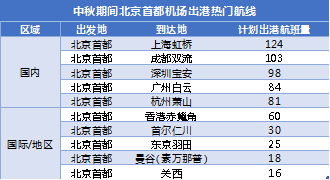 值得注意的是,十佳賞月航線中有5條往返北京首都機常
